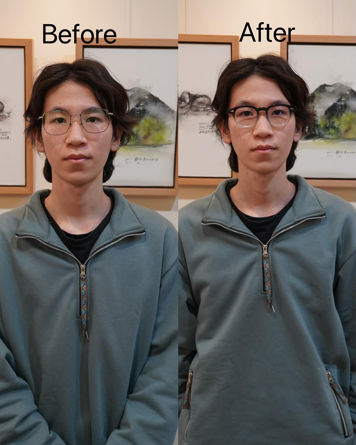 這次幫許先生挑選這款類眉型鏡框,由全黑到奶白色,整體斷層感較明顯,眉型眼鏡本身就帶給人成熟穩重且有專業度,這副眼鏡為整體造型增添了書卷氣,也突顯出他清晰的思維與專注的眼神。搭配他自然不造作的穿搭風格,展現出一種知性沉著又不失親和力的獨特魅力。